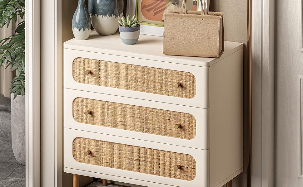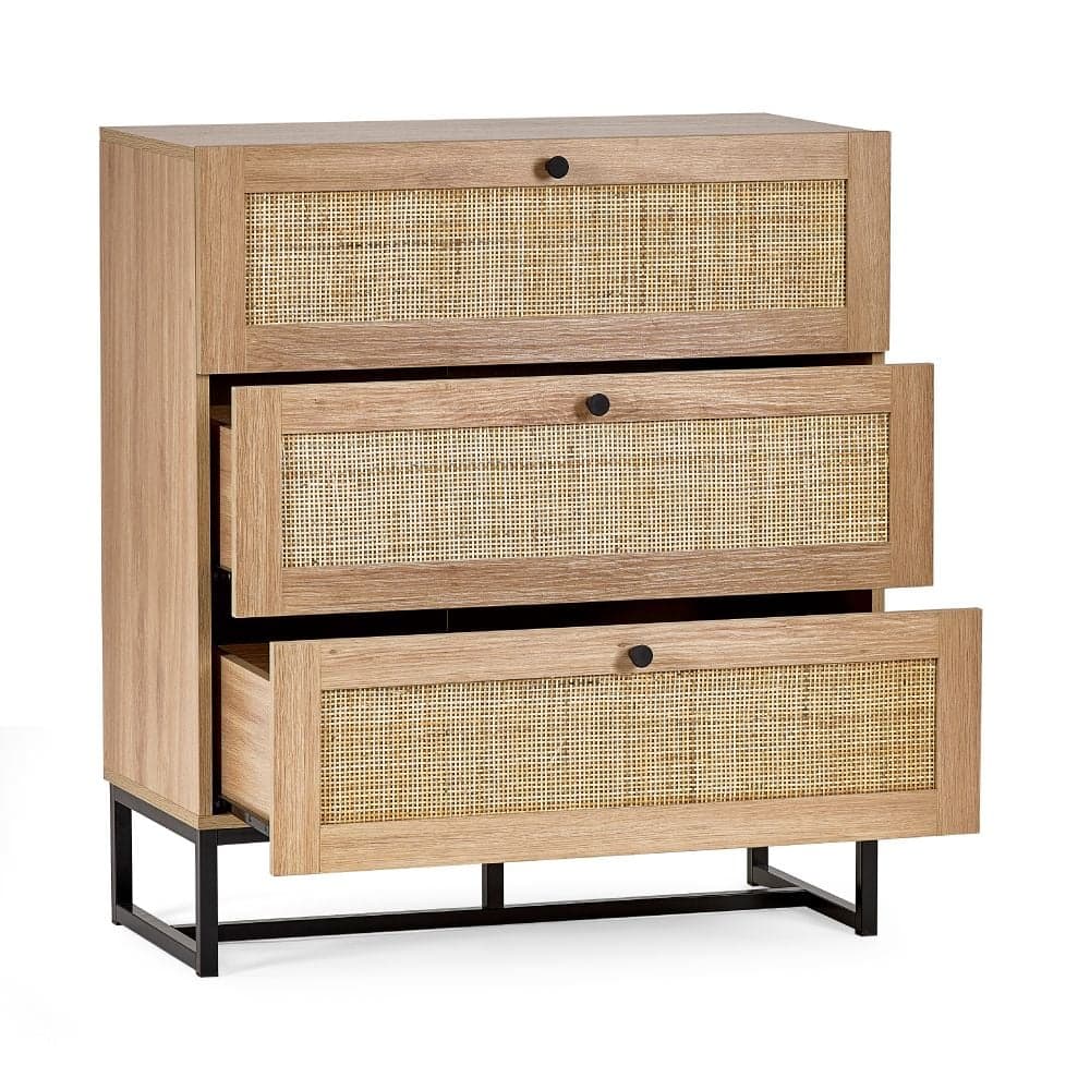 FREE delivery Thu Feb 8. WEB Add this stunning 3-drawer chest with a mid-century modern flair boasting a sleek matte black frame and charming rattan veneer drawer fronts to your home. 36w x 20d x 33h.